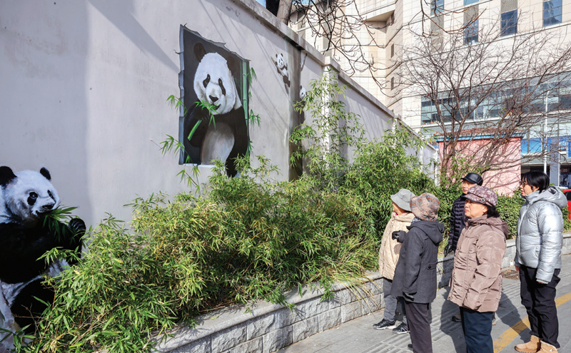 日前,在天津市和平區南營門街獨山路一側空白牆體位置,由街道和志願者聯合打造的主題牆繪亮相。記者 吳迪 攝。…
