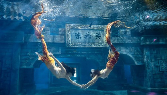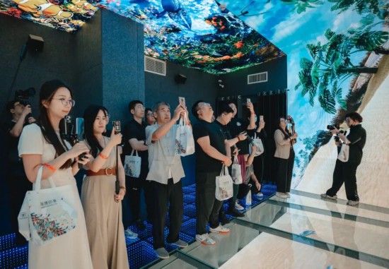 精彩的美人魚表演、神秘的三星堆沉浸式光影展、科技感十足的球幕影院、刺激的水上快艇……在國家海洋博物館,一行人游覽館內特色展覽、觀看互動表演、體驗VR項目,全方位感受生態城豐富的海洋文旅資源。