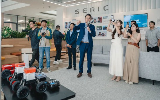 “這是中心列入首批科研項目之一的吊頂檢測機器人,目前已經在生態城多個實際應用場景進行了產品原型測試。”聽了介紹,大家紛紛駐足觀看,詳細了解機器人在智能運維領域的應用場景和產業化前景,對匯聚中新優質資源推動科技成果轉化落地充滿信心。