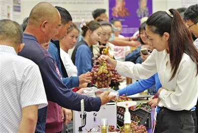 觀其形,聞其香,更要品其味。在2025第十七屆茶澱葡萄文化旅游嘉年華活動現場,茶澱農產品、文創產品、非遺手作等展位各具特色,其中,葡萄展位人氣最旺。在場市民手拿新鮮採摘的玫瑰香葡萄,聞一聞,再嘗一嘗,紛紛豎起大拇指,“別看個頭不大,味兒是真絕,玫瑰香氣很濃”“放進嘴裡一咬,甜汁一下就爆開了,滿口留香”……