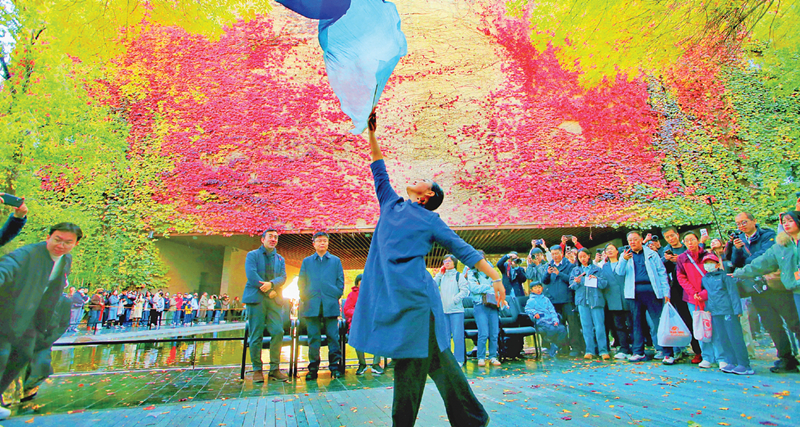 碧雲天,黃葉地,紅葉牆,澄心池,秋色連波,池上寒煙翠,師生們在此放鬆身心,賞景觀展、書寫心願、吟誦彈唱、拍照留念,馮驥才與師生們合影、交流……10月26日,天津大學馮驥才文學藝術研究院(以下簡稱馮研院)因為“秋實”·第七屆紅葉季活動而變得熱鬧非凡,為130歲的天津大學奏響自然美景與人文氣息的交響曲。這也是馮研院建院20周年系列活動之一。