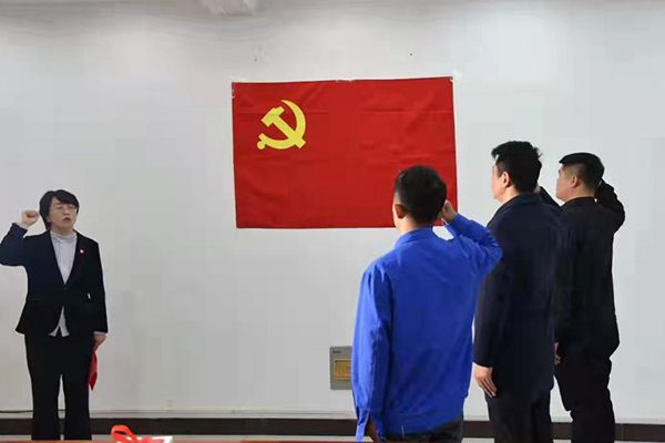 “我志愿加入中国共产党,拥护党的纲领,遵守党的章程……随时准备为党和人民牺牲一切,永不叛党。”1月29日,在天津市国资委党委二级巡视员、企领一处处长、津南区抗疫一线前方指挥部临时党委书记刘翌的领誓下,郏雷、李金梁、宋兆海三位同志面向党旗庄严宣誓。