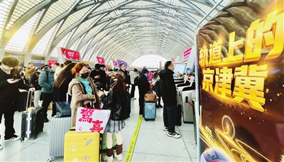 京津冀环线高铁抵达天津西站,旅客准备进站上车。 记者 张磊 摄